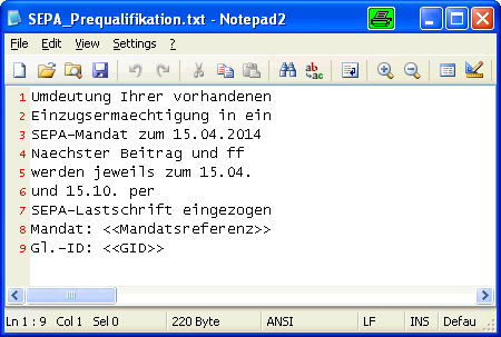 - oder eine bzw. zwei SEPA-Lastschriftdateien